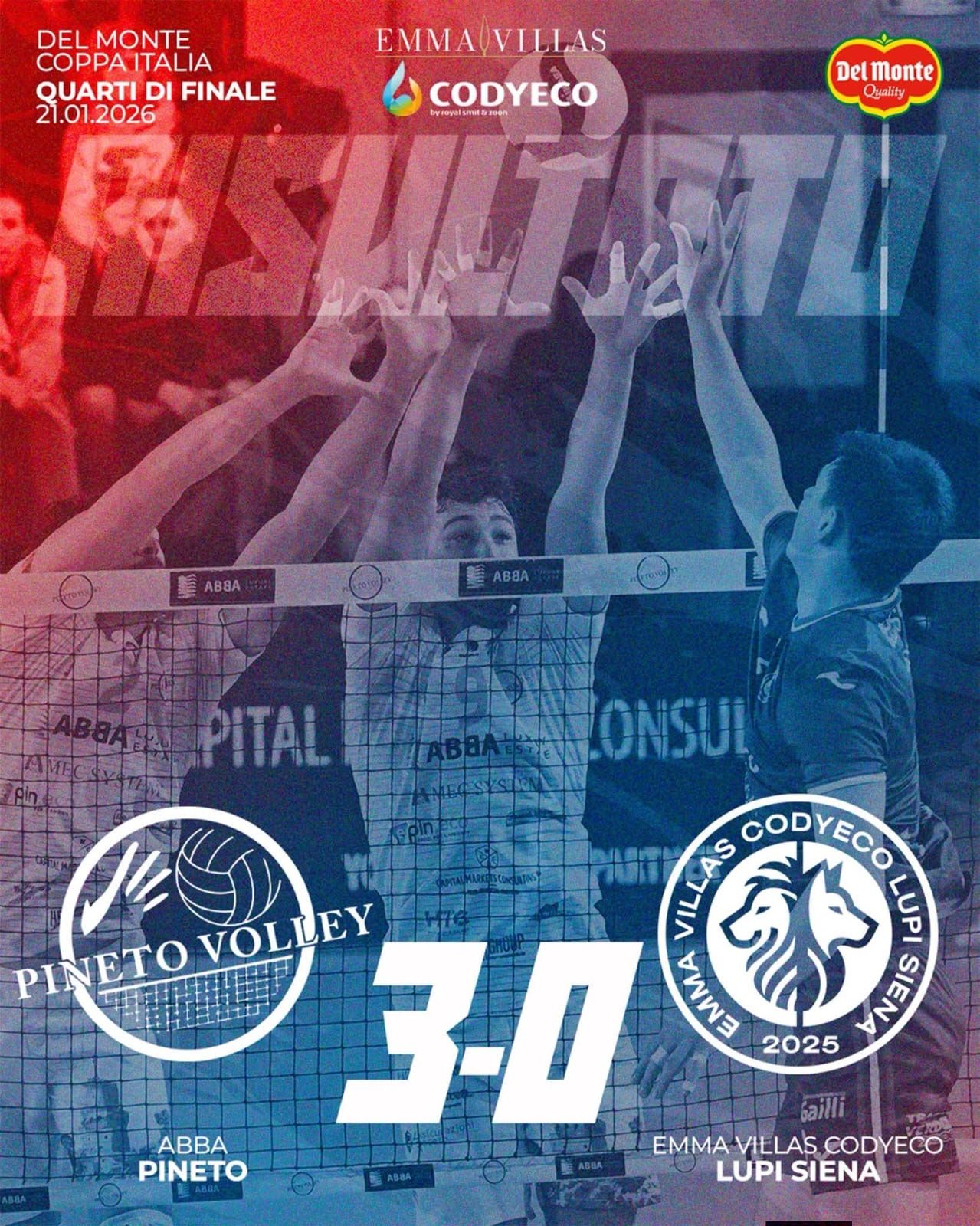 Successione set: 25-18; 25-22; 25-16.